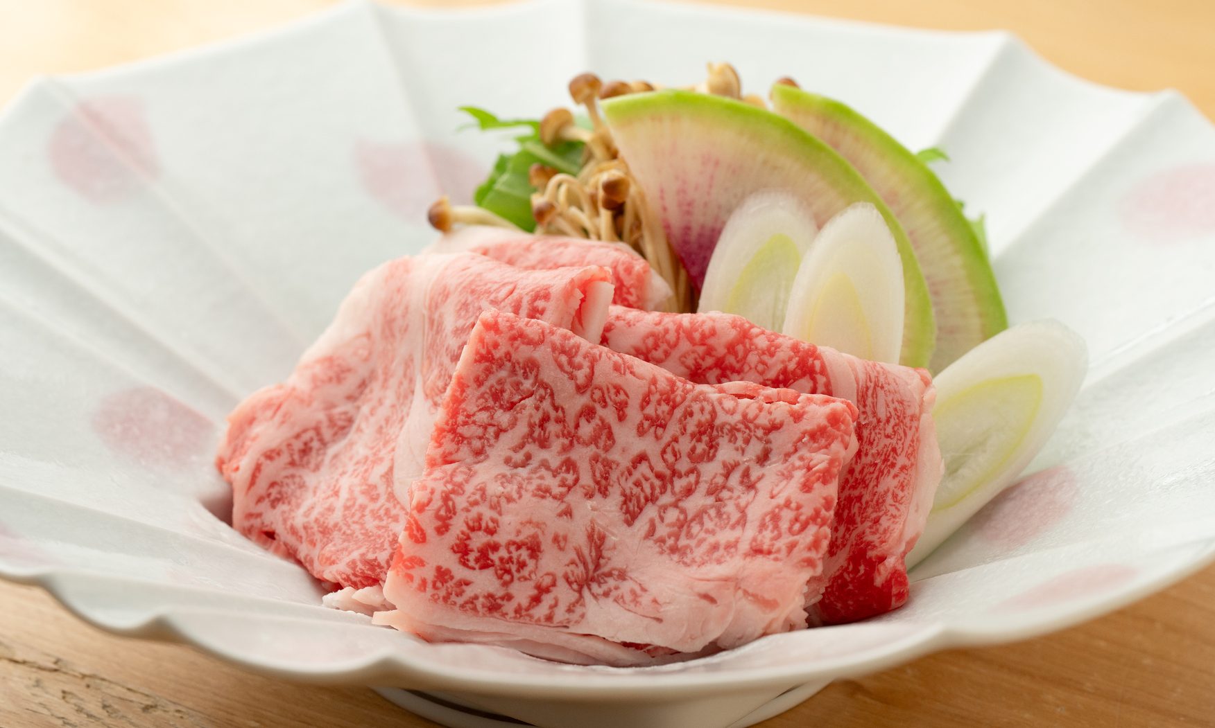 滋賀県草津市の精肉店「サカエヤ」で丁寧に手当てされた近江牛のしゃぶしゃぶです。
